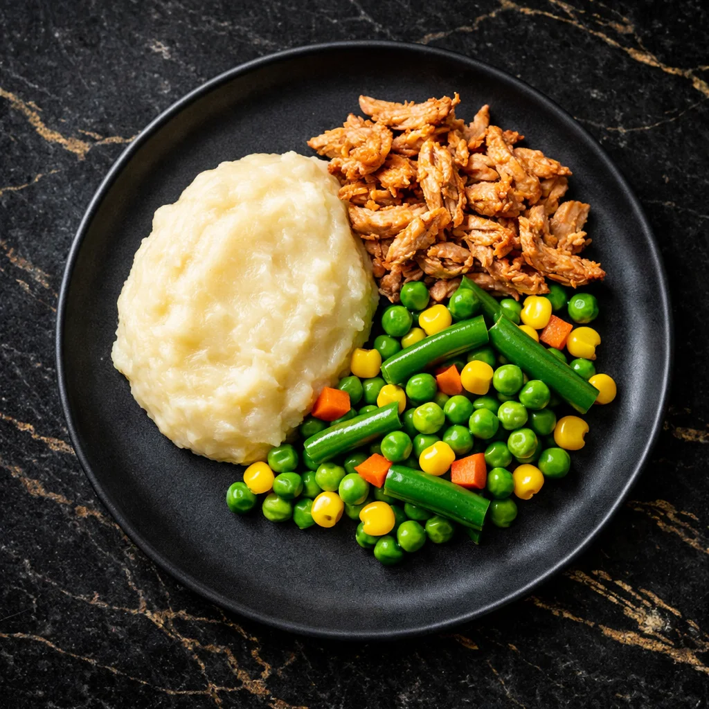 O aipim virou purê cremoso, o frango foi desfiado no capricho e os legumes entram pra completar com cor, textura e nutrição. Um prato acolhedor, com identidade gaúcha e macro que respeita o seu objetivo. Comida de verdade, sem abrir mão do sabor nem do resultado.