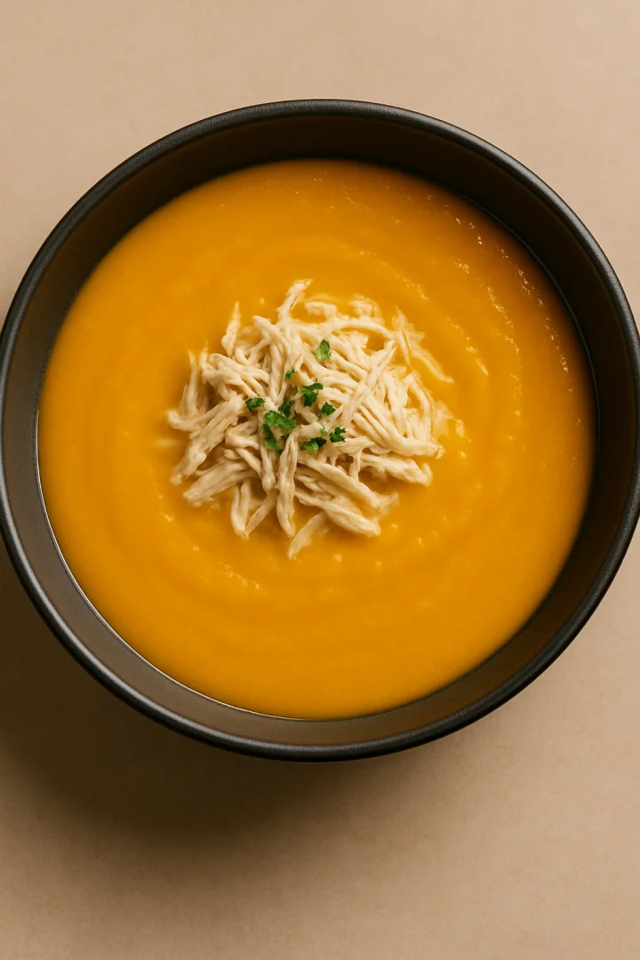2x C2 - Caldo de moranga com peito de frango desfiado.