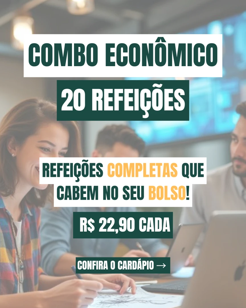 Quer praticidade para o mês inteiro gastando menos? Esse combo traz 20 marmitas completas e variadas FitLab, pensadas para quem busca economia sem abrir mão do sabor e da saúde.